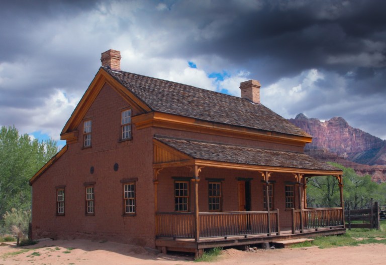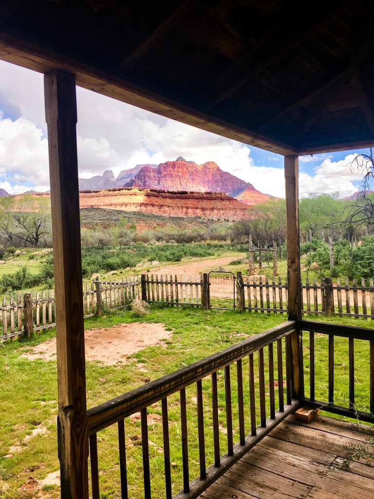 A view of Zion National Park from the John Wood Porch.