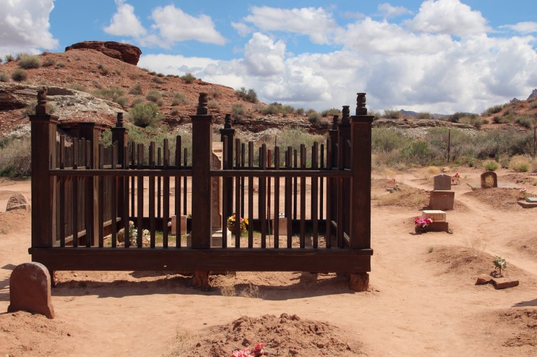 As with other ghost towns, Grafton has had its share of movies shot on location. In Old Arizona was filmed in 1929 and was the first “talkie” filmed outdoors. A portion of Butch Cassidy and the Sundance Kid was filmed there in 1969, giving the film one of its iconic moments as Paul Newman and Katherine Ross ride a bicycle together to the music of “Raindrops”. The TV Child Bride of Short Creek starring Diane Lane and Helen Hunt was filmed there in 1981. Numerous other movies and shorts were filmed there as well.